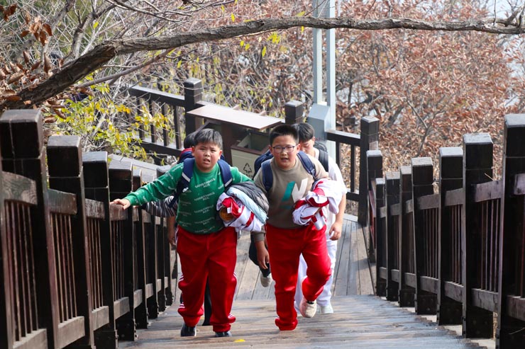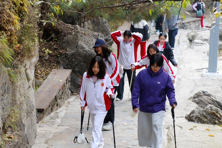 山路蜿蜒,秋色斑斓。同学们踏石阶而上,彼此搀扶、互相鼓励,清脆的笑声与脚步声交织成最美的青春乐章。