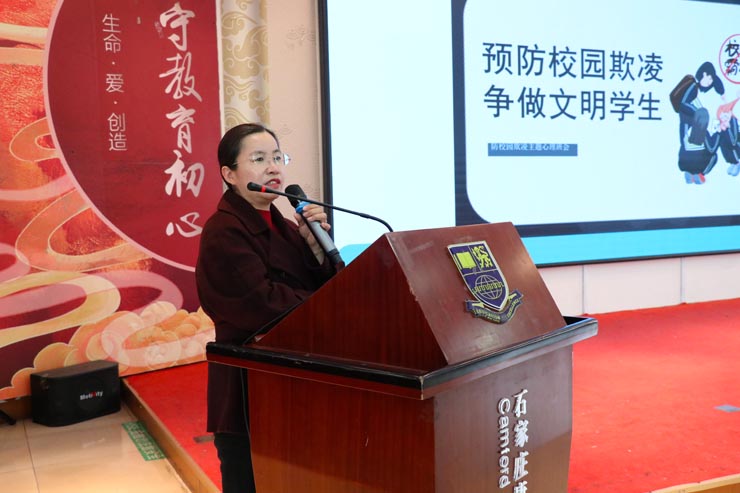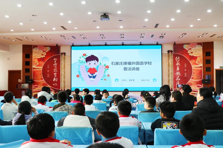 金秋送爽,法润人心。为贯彻落实国家保护未成年人的法律法规,预防、打击校园欺凌事件,提高学生对校园霸凌的应对能力,增强学生的防范意识,营造平安、和谐、稳定的育人环境。2025年10月24日下午,我校特别邀请了正定县司法局赵亚敏律师,为同学们开展了一场深入人心的法制教育讲座。本次讲座由小学部王兴主任主持,小学初中国际高中全体师生参与学习。