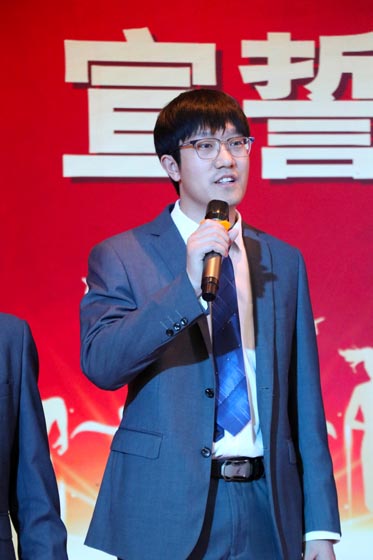 初三年级全体教师上台宣誓: