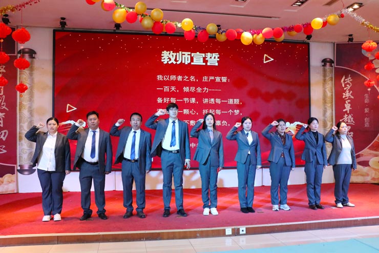 “一百天,倾尽全力——备好每一节课,讲透每一道题,温暖每一颗心,托起每一个梦,不放弃、不敷衍、不辜负。与你并肩,直至凯旋,师生同心,中考必胜!”