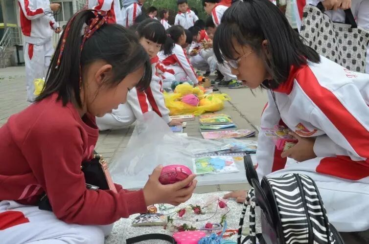 活动中,同学们将自己不需要的图书、学习用品、玩具等物品拿到跳蚤市场上来展示,进行等价交易,从而培养了孩子不浪费物品、节约资源、爱护环境的意识和良好的行为习惯。而且通过市场交易实践,给学生创设了理财平台,学会了推销、购买商品,培养了他们的合作、动手、创造等能力。