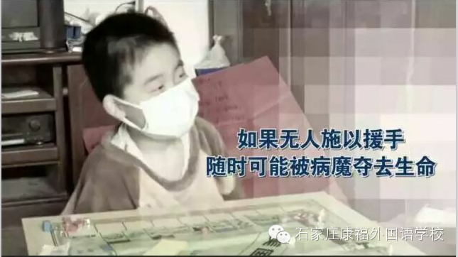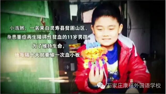 为了挽救一个幼小的生命,请家长们立刻行动起来吧!家长是孩子最好的表率,您所捐献的每一分一毫、一点一滴都蕴存着无价的爱心,终将化成一缕缕阳光,汇成一股股甘泉,温暖孩子的心胸。虽然个人的力量微不足道,但只要有希望,我们就不能放弃!让我们家校合力,用博爱的胸怀铸就世间真情,用切实的行动拯救幼小的生命!或许我们的捐款只是爱的江河中那小小的一滴,但相信爱的力量定能帮助小浩然和他的家人一起战胜病魔。在此,康福外国语学校真诚倡议:请各位家长献出您无私的爱,伸出您温暖的手;让我们一起点燃希望之火,尽绵薄之力,献出爱心;让我们共同努力来拯救这个幼小的生命吧!